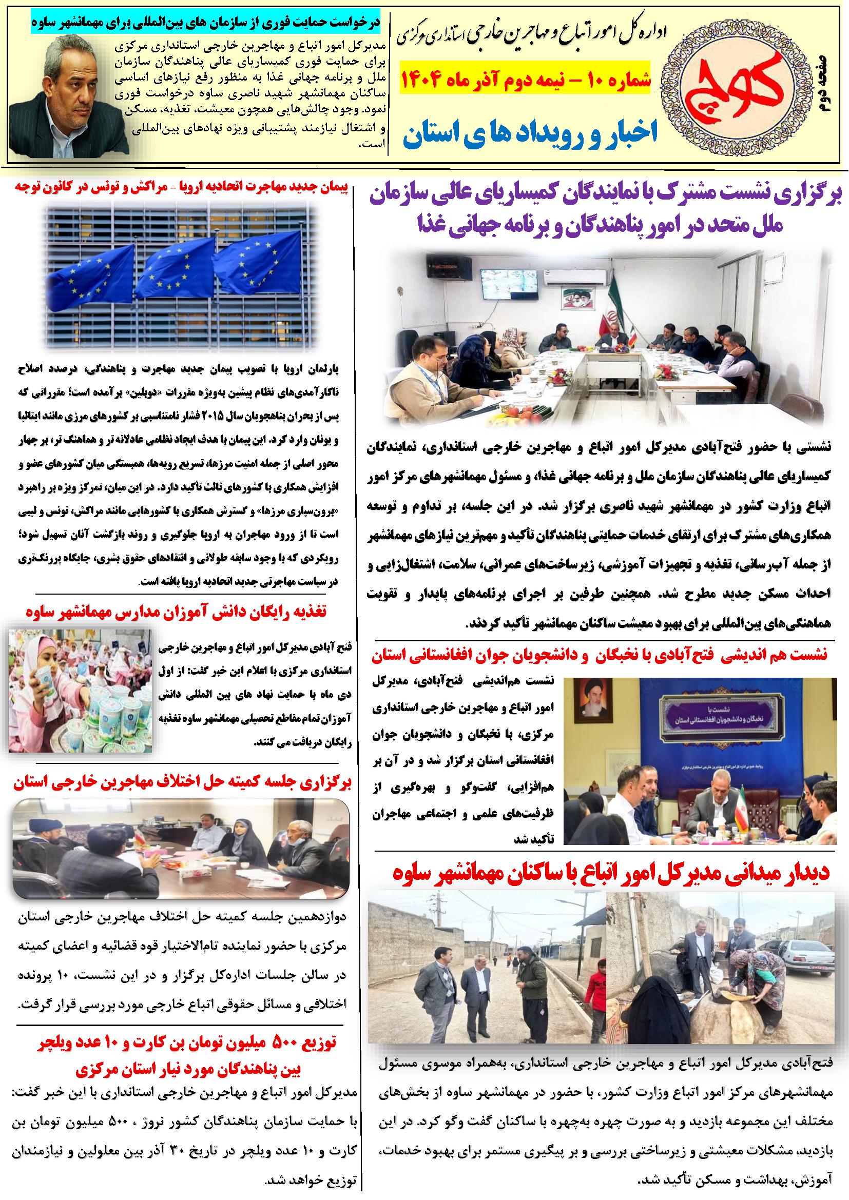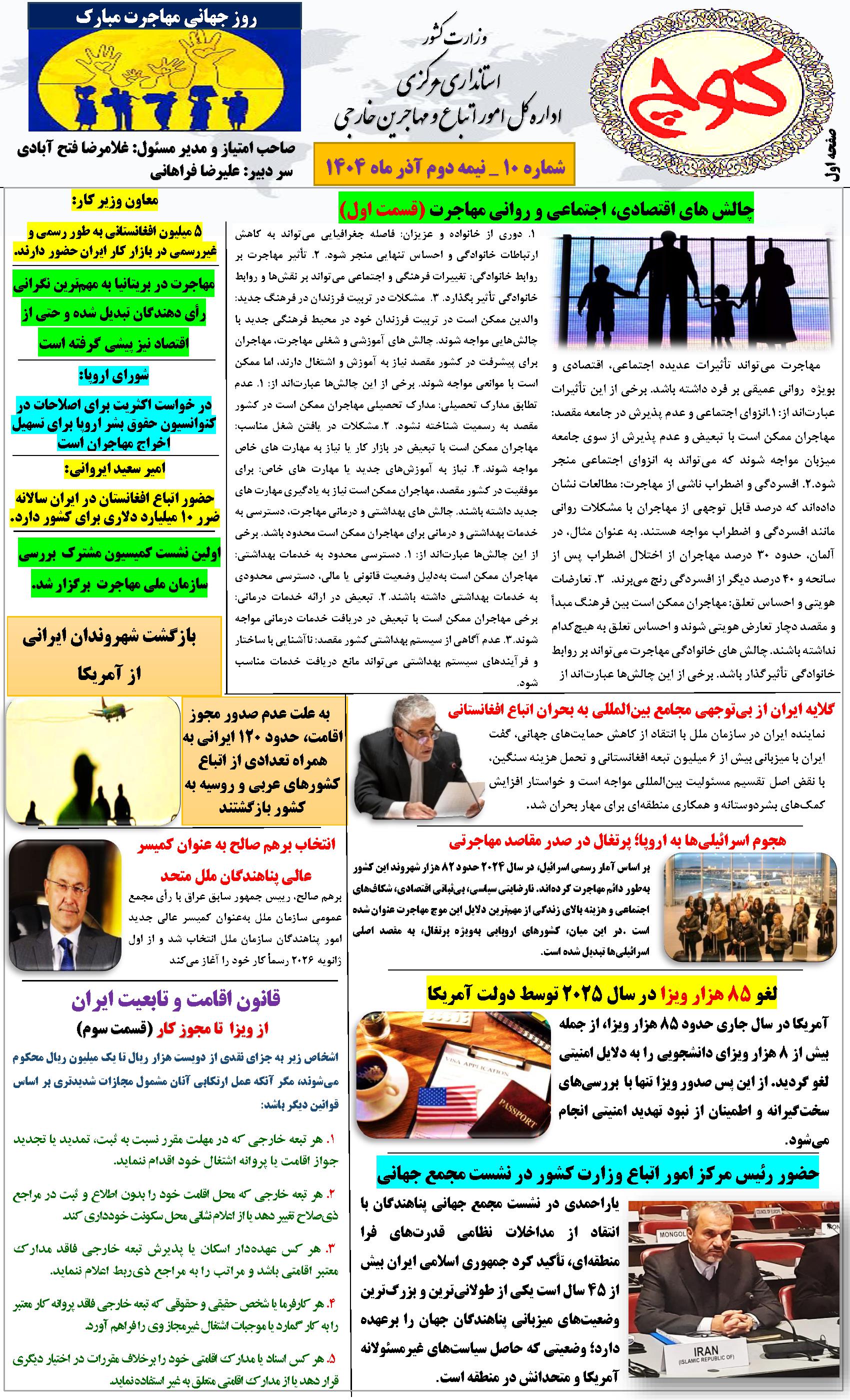 دهمین شماره نشریه کوچ ۰۳ دی ۱۴۰۴ | ۰۹:۲۱ کد : ۵۷۵۲۰ اطلاعیه ارسال به دیگران نام شما ایمیل شما ایمیل دریافتکننده ارسال انصراف تعداد بازدید:۴۱ دهممین شماره نشریه کوچ، توسط دفتر امور اتباع و مهاجرین خارجی استان مرکزی منتشر گردید.