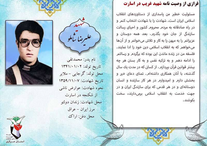 فرازی از وصیت نامه شهدا ۰۵ بهمن ۱۴۰۴ | ۰۹:۴۵ کد : ۵۷۶۸۳ اطلاعیه ارسال به دیگران نام شما ایمیل شما ایمیل دریافتکننده ارسال انصراف تعداد بازدید:۱۰۷ فرازی از وصیت نامه شهدا فرازی از وصیت نامه شهید بزرگوار علیرضا شاملو :