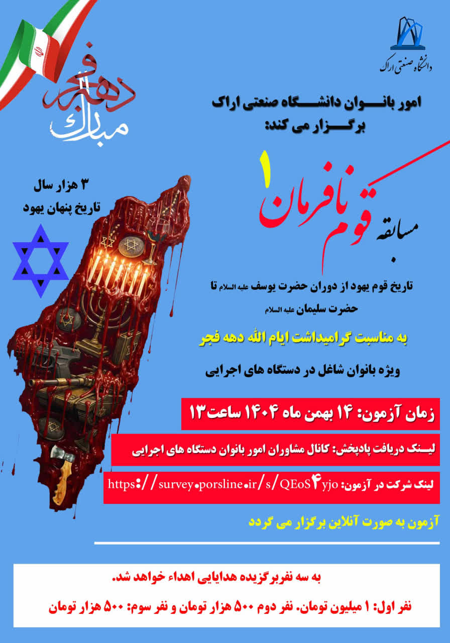 مسابقه قوم نافرمان ۰۸ بهمن ۱۴۰۴ | ۱۰:۳۹ کد : ۵۷۷۴۳ اطلاعیه ارسال به دیگران نام شما ایمیل شما ایمیل دریافتکننده ارسال انصراف تعداد بازدید:۱۲۳ برگزاری مسابقه قوم نافرمان، در ایام الله دهه فجر