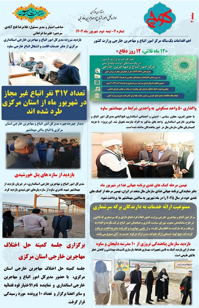 چهارمین شماره نشریه کوچ، توسط دفتر امور اتباع و مهاجرین خارجی استان مرکزی منتشر گردید.